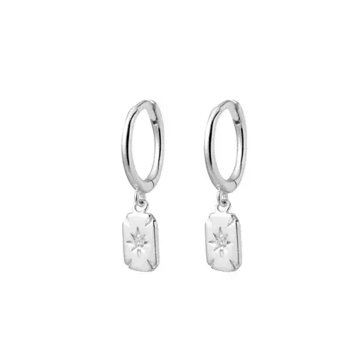 Sterling silver huggie earrings with petite tag featuring CZ North Star